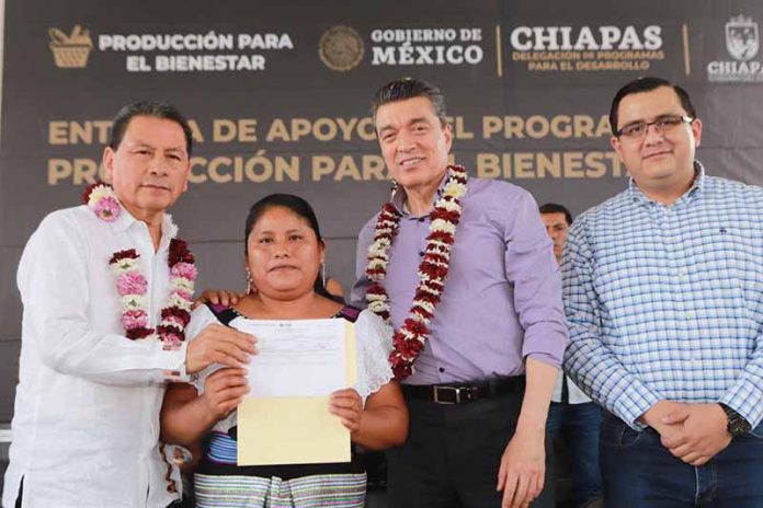 Al entregar apoyos del Programa Producción para el Bienestar, el gobernador Rutilio Escandón Cadenas apuntó que estas acciones contribuyen a lograr la autonomía económica y alimentaria de los pueblos, una de las tareas principales de la Cuarta Transformación que encabeza el presidente Andrés Manuel López Obrador.