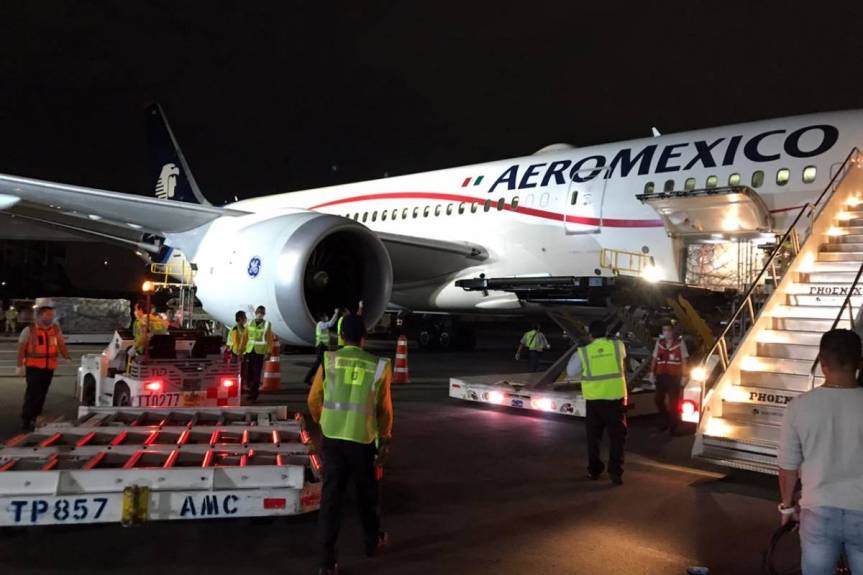 Este martes llegó a las 21:04 el que fuera el hangar presidencial del Aeropuerto Internacional de la Ciudad de México (AICM) el avión denominado Misioneros de Paz, el cual transportó desde Shanghái insumos médicos para hacer frente al Covid-19.